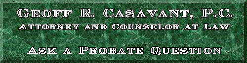 5. If I find your question to be particularly interesting, I may post both the question and my response on the page of Frequently Asked Probate Questions. Questions will be edited for content and to make them more general if necessary. Questions will also be attributed to you by first name, city and state.